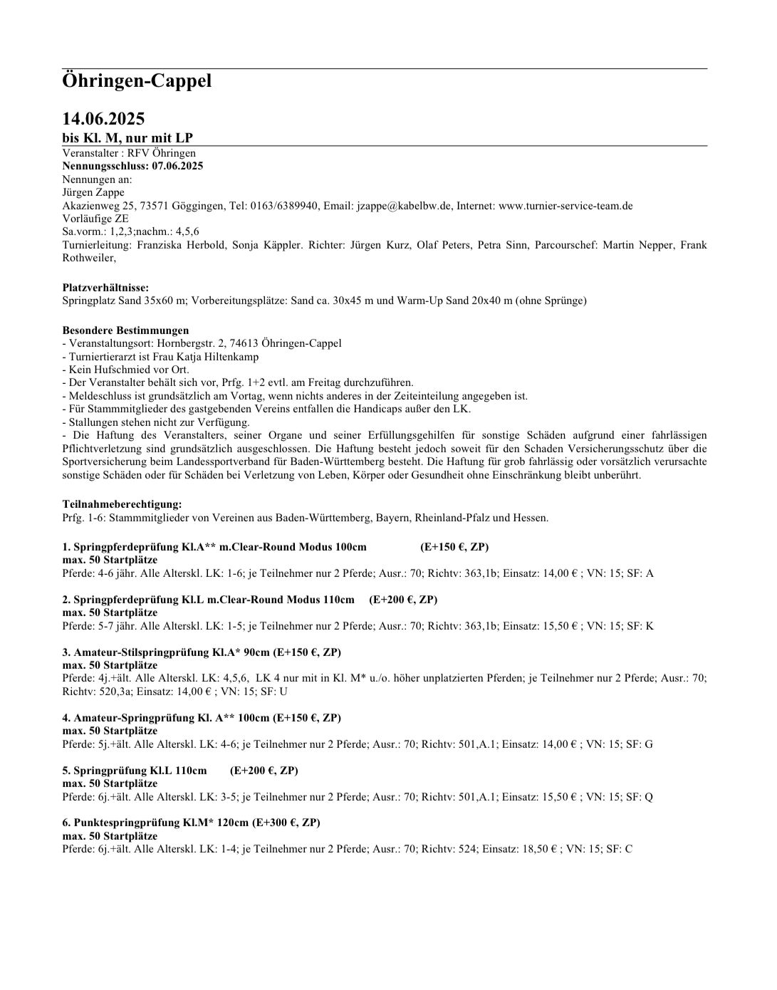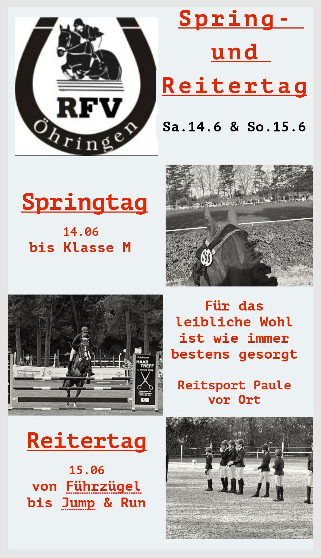 | Sa. 14.6.25 | Springtag auf der Reitanlage (Ausschreibung) (Zeiteinteilung) (Flyer) (Ergebnisse)  | ||||||||||||||||||||