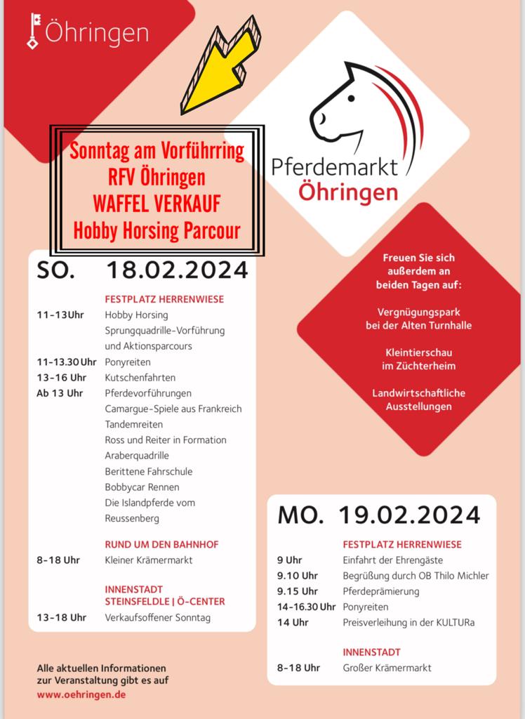 | So. 18.2.24 | Waffelstand und Hobby-Horsing-Parcour unserer Vereinsjugend auf der Herrenwiese beim Pferdemarktprogramm (Info) | ||||||||||||||||||||